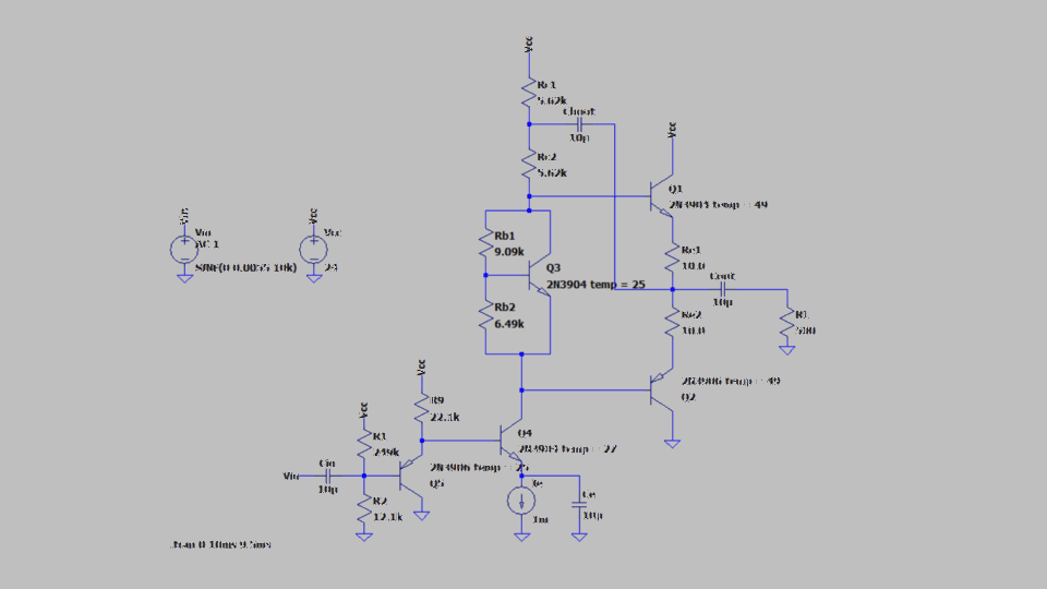 Designed and simulated a single-ended push-pull audio amplifier given design and spec requirements.